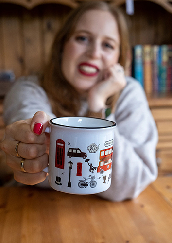 La taza londinense que te presentamos ha sido diseñada con mucho cariño, ¡y tiene un montón de cositas chulas que representan a la ciudad del Támesis!